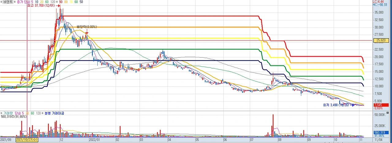 '초록뱀 컴퍼니'가 '액면가'까지 내려꽂히고 있는 주식입니다. 비덴트의 주가가 '500'원까지 내려올 것이라 말하는 게 아닙니다. cb한도 '액면가'가 명목상 존재하는 것이 아니라 '실제로' 내려올 수 있음을 보여주고 있습니다. 현재 초록뱀컴퍼니의 경우에는 비덴트의 주요 주주로서 비덴트 주가의 상승과 동시에 '아주 잠깐' 상승세를 보여줄 것이라 생각합니다. 아래에는 제가 보는 목표가와 매수해야 할 시점을 담고 있습니다.