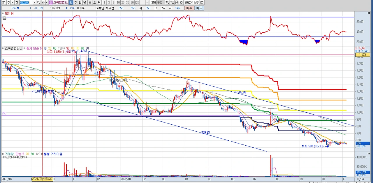 정리하면 초록뱀컴퍼니는 대략 한 달 반 가량의 시간을 두고 지켜보아 500원 초반에 계속 머물고 있다면, 최저조정가액인 500원을 손절 라인으로 정하고 스윙을 해보거나 슈팅이 나온 후에 추세를 밀어올린다면 거래량을 계산하여 잔여 cb 물량을 매도하려는 순간을 노리고 단기 스윙을 할 수 있습니다.