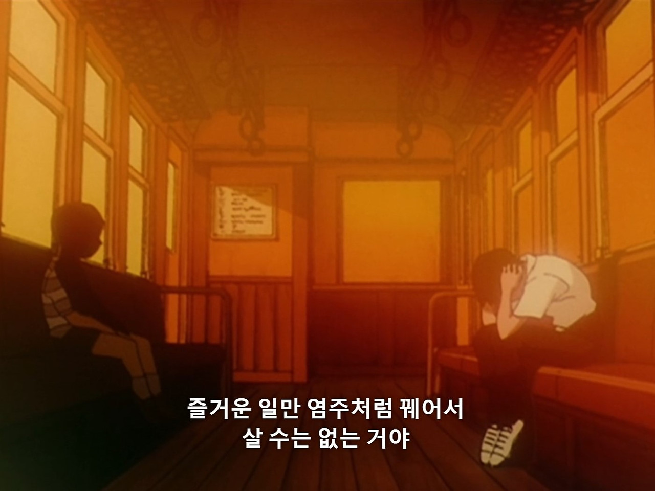 나는 무엇보다도 바보 트리오(신지, 켄스케, 토우지)가 등교할 때면 들려오던 매미 소리와 수업을 마치는 종소리가 단순하지만 가장 편안함을 느꼈다. 우울한 분위기만 일어나는 세기말 배경에서 친구들과 가볍게 농담을 주고받는 신지의 모습이 가장 평화로운 순간이었기 때문이다. 이 셋이 함께 등장할 때면 밝은 분위기로 전환되는 이유에 더욱 애착이 갔다.