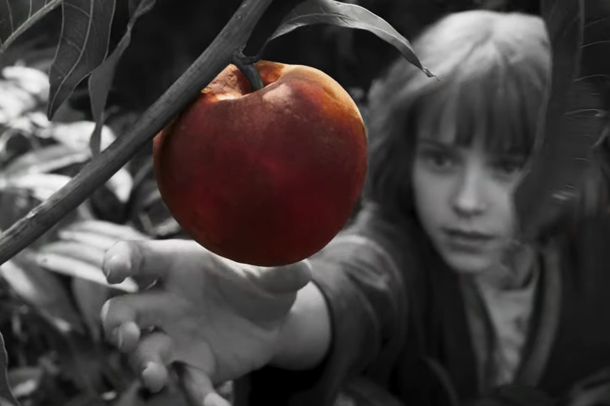 퓨리오사의 고향 풍요의 땅은 자연물이 남아있는 유일한 낙원이라고 할 수 있다. 초반부 어린 퓨리오사가 무리하게 복숭아를 따려다 무법자들에게 겁탈당하며 이야기가 시작되는데, 이때 카메라에 잡히는 복숭아는 굉장히 중요한 듯한 구도를 보이며 마치 금단의 열매 '선악과'처럼 상징성을 띤다. 이 일을 계기로 그녀는 모든 사건의 원흉인 디멘투스의 손아귀에 넘겨지고, 감금 생활이 이어지다 임모탄에 눈에 들어 시타델로 팔려 간다. 와중 호시탐탐 고향으로 도망칠 기회를 노리는 과정에서 근위대장 잭을 만나게 되고 서로에게 의지할 수 있는 사이가 되지만, 무법지대에서 희망이란 쉽게 찾아볼 수 없는 것이다. 잭은 퓨리오사의 든든한 멘토가 되었으나 탈주를 돕다 디멘투스에 의해 죽음을 맞이하고, 그녀는 자신의 고향이 그려진 왼팔을 잃는다.