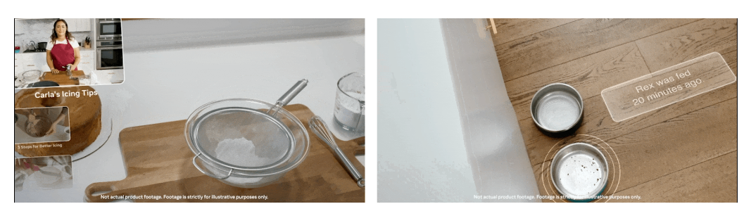 또한 미래에는 SAM이 AR 안경을 통해 일상적인 물건들을 식별할 수 있게 될 것이라 한다. 이는 일정 관리나 사용법 안내 등 유저에게 유용성을 제공할 수 있다. 예를 들어 아래의 오른쪽 그림처럼 강아지 밥 그릇을 식별하여 강아지가 언제 마지막 식사를 마쳤는지 정보를 표시해줄 수 있다.