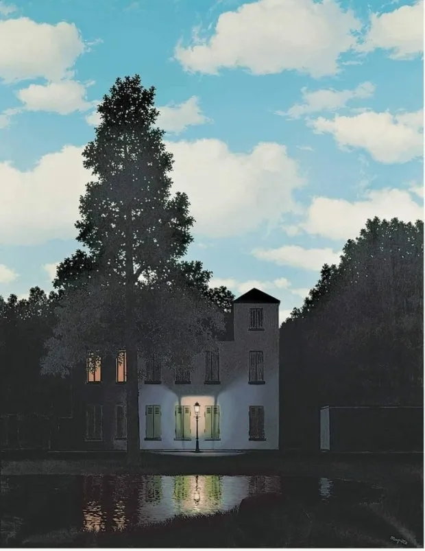 마치 르네 마그리트의 그림 <빛의 제국>을 보는 것 같은 느낌이 든다.