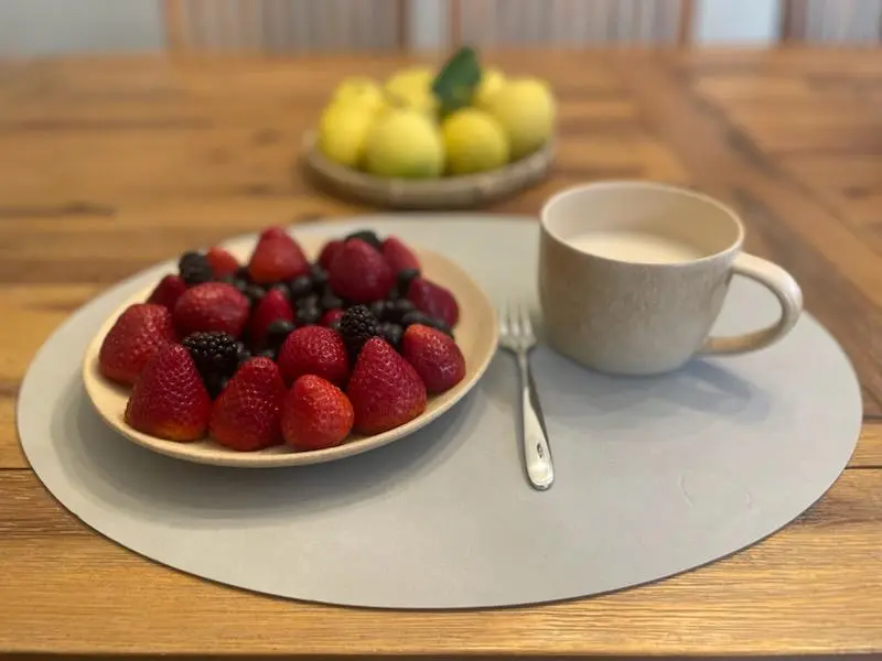 아이들이 도착해서 식사를 하고 후식으로 딸기랑 블루베리를 내어줍니다.