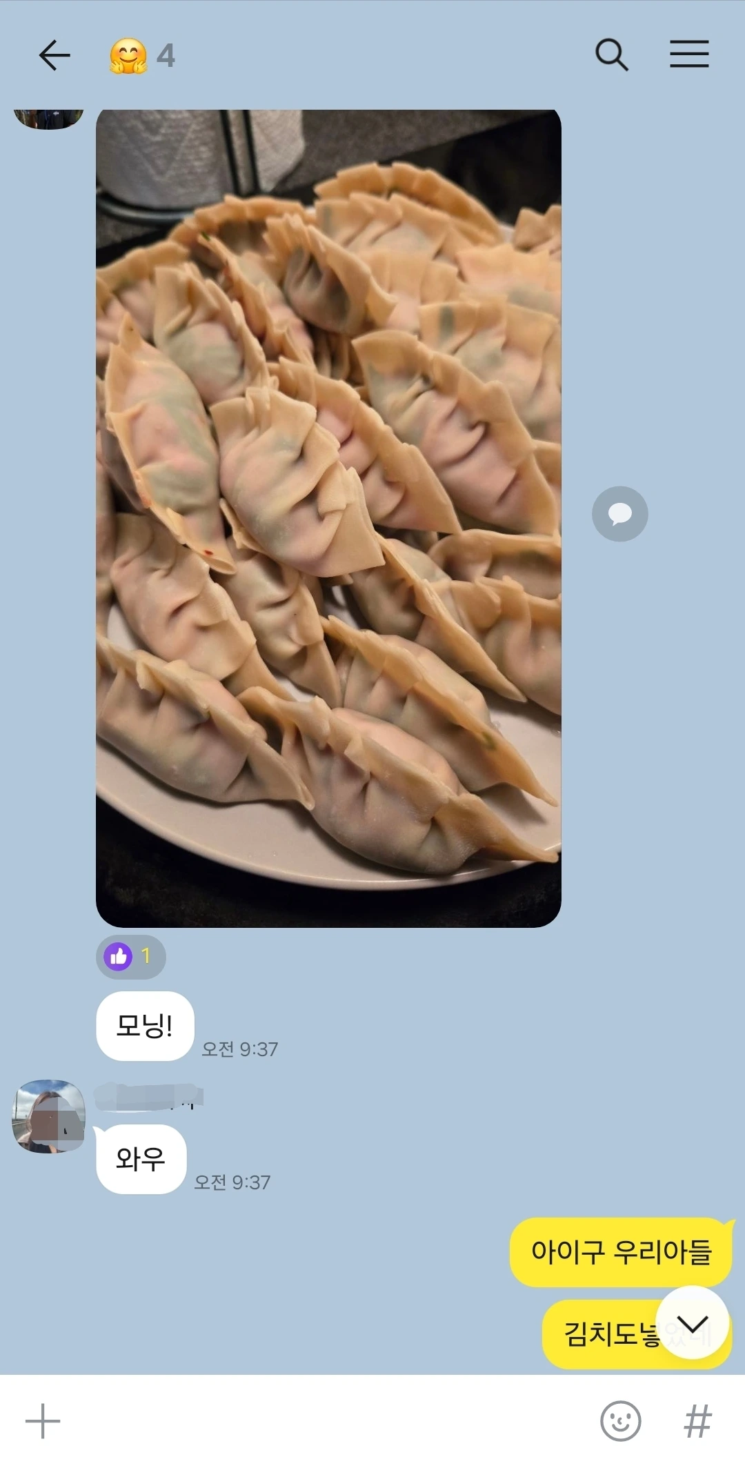 아이들과의 통화나 연락 끝엔 언제나 잘 챙겨 먹으라는 말로 마무리를 하게 되곤 한다. 그런 엄마의 마음을 아는지 아이들은 가족단체방에 매일 먹는 음식을 올리면서 잘 먹고 잘 지낸다고 소식을 전해온다.