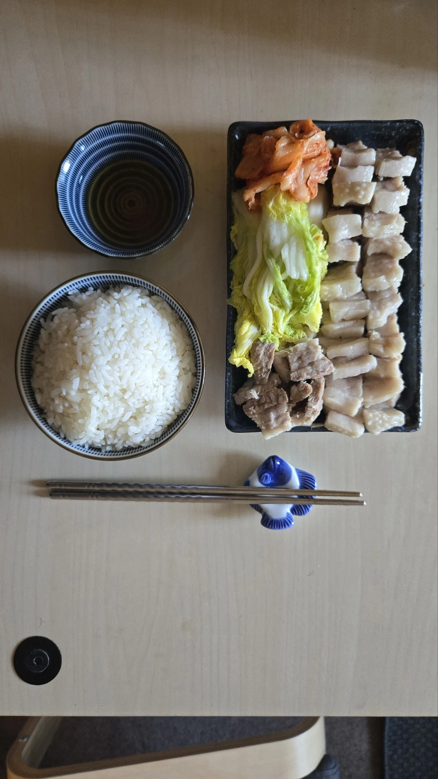 수육을 만들었다며 저녁상을 근사하게 차린 사진을 보내왔습니다.