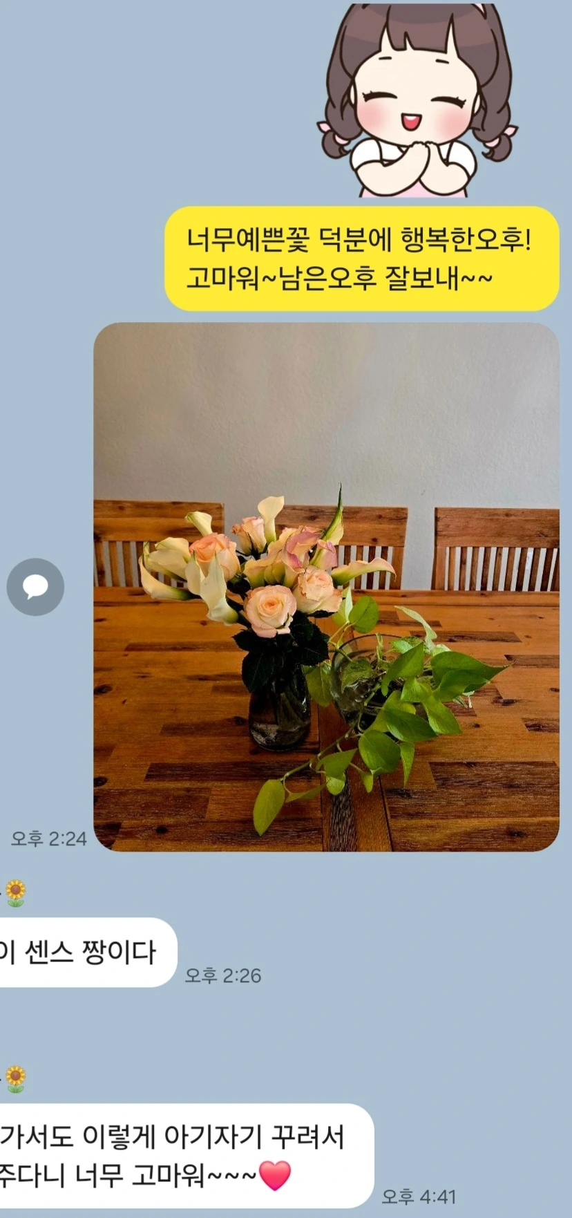 친구의 꽃선물이 쏘아 올린 공