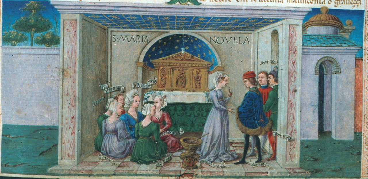 피렌체에 창궐 중인 흑사병을 피해 한적한 시골의 대저택으로 피난을 온 열 명(여자 7+ 남자 3)이 하루에 열편의 이야기를 열흘에 걸쳐 나눈 총 100편의 이야기가 이렇게 시작됩니다. 이 이야기들은 그 당시 유럽에서 구전으로 돌아다니던 손바닥 크기의 작은 스토리들로 보카치오의 펜을 거쳐 수정되고 재창조되어『데카메론』에 자리를 차지하게 됩니다. 보카치오가 정신적으로 힘든 약자들 특히 여성분들에게 힘과 위안이 되고자 했던 『데카메론』의 이야기 세계를 잠간 들렀다 가고자 합니다.
