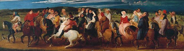 1386년 영국 런던에서 남쪽으로 약 5 마일 떨어진 곳에 위치한 그린위치. 지금은 그린위치 천문대, 본초 자오선(경도 0°), 그리니치 평균시로 유명한 곳이지만 당시에는 영국의 시인 지오프리 초서(1340s – 1400)가 살던 곳입니다. 그가 살던 지역은 런던에서 출발한 순례자들이 약 90 km 떨어져 있는 캔터베리 대성당으로 순례 여행을 가는 길목에 있었습니다. 런던에서 캔터베리까지 걸어서 6 일 말 타고 가는데 4 일 걸린다고 합니다. 초서는 자신이 살던 집 창문너머로 순교한 캔터베리 대주교인 토마스 베켓의 시신이 안치된 대성당으로 향하는 순례자 일행들을 목격했거나 아니면 그들이 지나가면서 떠드는 소리를 가끔 들었을 것으로 생각이 듭니다. 그는 이러한 자신의 일상적인 경험에 문학적 상상력을 더해 그를 오늘날 영국 문학의 아버지라는 명칭을 얻게 해준『캔터베리 이야기』(1400년대) 를 집필하기 시작합니다. 초서는 총 120편의 이야기를 계획했지만 24 편 만을 완성하는데 그칩니다. 초서의 이야기는 두 파트 (서시+본분)로 되어 있습니다. 서시는 순례자들에 대한 묘사로 되어 있고 본문은 순례자들이 차례로 전달하는 이야기입니다.