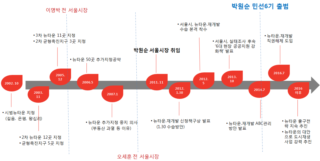 이 중심에 선 이가 바로 현 박원순 서울시장이었다. 그는 변화된 사회․경제 환경과 도시공간을 조화시키는 도시재생 및 재구조화(restructuring) 과제를 장기적인 안목으로 풀어가야 하는 시대적 과제를 직면했다. 하지만 그의 앞에 놓인 과제는 만만치 않았다. 오세훈 시장 때부터 시민들이 시대적 과제로 요구했던 뉴타운․재개발 문제를 해결할 수 있는 출구전략을 내놓아야 했기 때문이다.