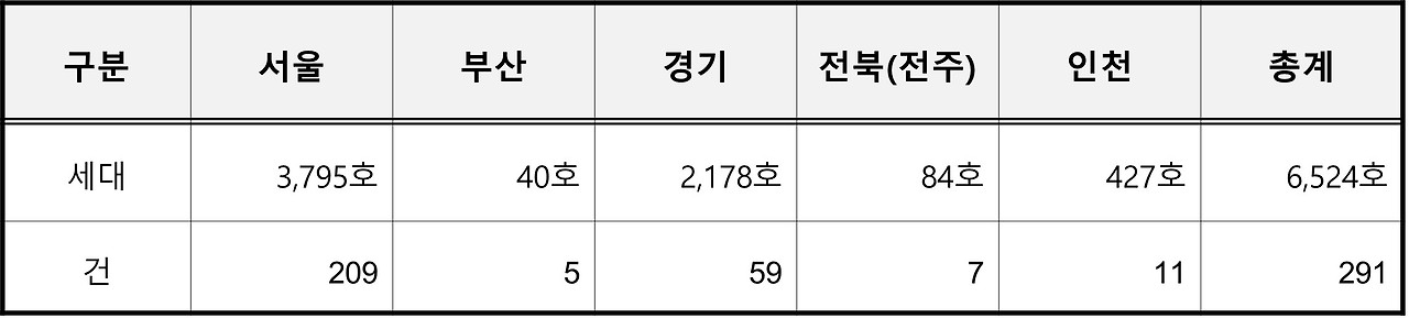 표 2. 지역별 사회주택 공급현황 (2023년 4월 기준) / 출처 : 이주원 외(2023), 경기주택도시공사 사회주택 특화모델 연구, 한국사회주택협회