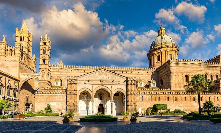 '부끄러움의 샘' Fountain of Shame다음 코스는 팔레르모 대성당이다. 팔레르모 대성당Chathedral of Palermo는 원래 로마 교황 그레고리 1세에 의해 지어진 교회였는데 이후 아랍 지배 시대에는 무슬림 모스크로 개조되었다. 그러다 1185년에 대주교 월터 오파밀(Walter Ophamil)에 의해 대성당으로 다시 개축되었다. 이후에도 여러 차례 증축, 변경, 복원되면서 오늘날의 모습이 되었다. 노르만, 무어, 고딕, 바로크 및 신고전주의 등 각 시대의 건축양식이 혼합되어 있는 건물 외관과 화려한 내부 인테리어는 감탄을 자아낸다. 대성당 안에는 신성 로마 제국의 황제 프레데릭 2세가 안치된 무덤이 있다고 한다.