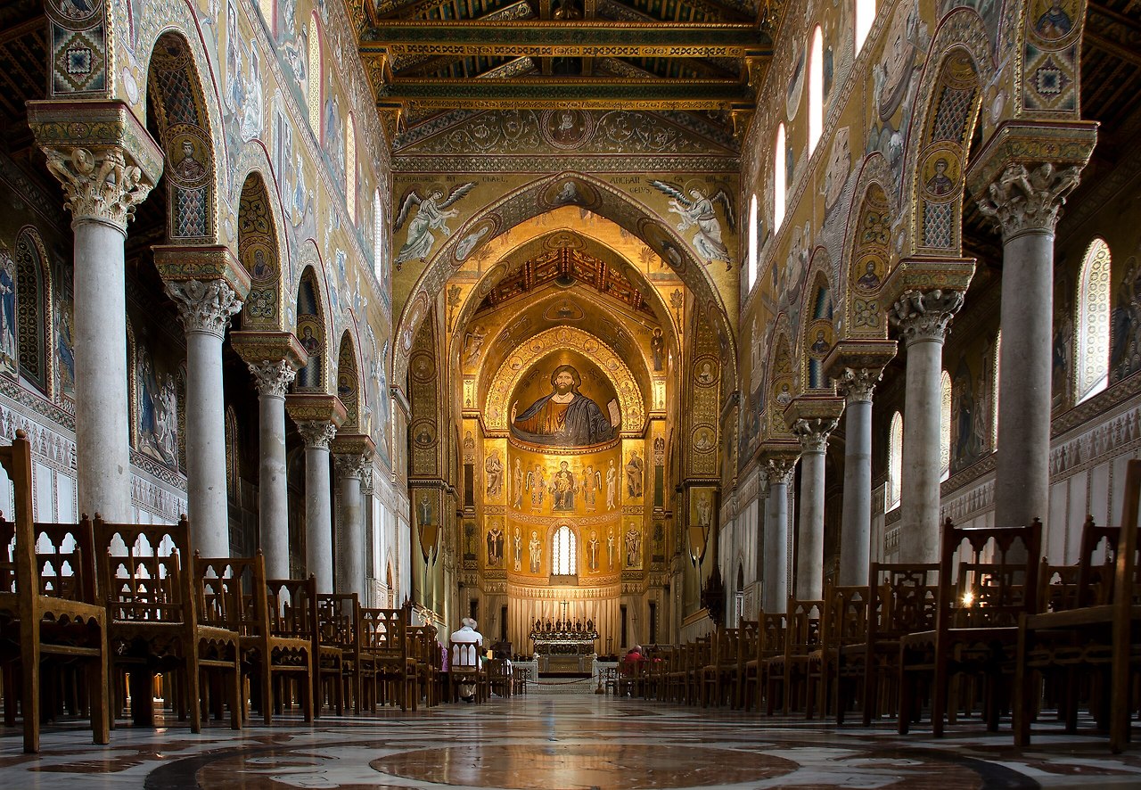 몬레알레 대성당(전형적인 노르만 양식의 천장이 보인다.)몬레알레 대성당은 시칠리아의 왕 월리엄 2세가 자신의 무덤으로 사용하기 위해 건축되었는데 굉장히 화려하다. 반면에 대주교 월터 오파밀 대주교가 이에 대항하기 위해 건축한 팔레르모 대성당은 웅장하고 엄숙하다.