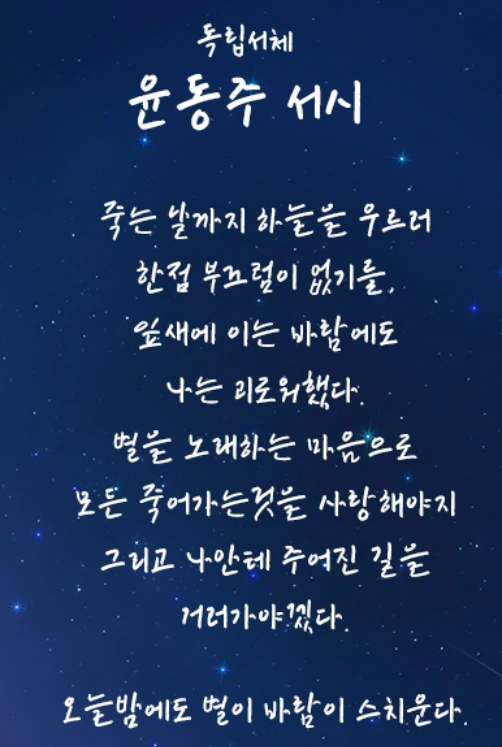 어느 날, 윤동주 시인의 ‘서시‘를 읽다가