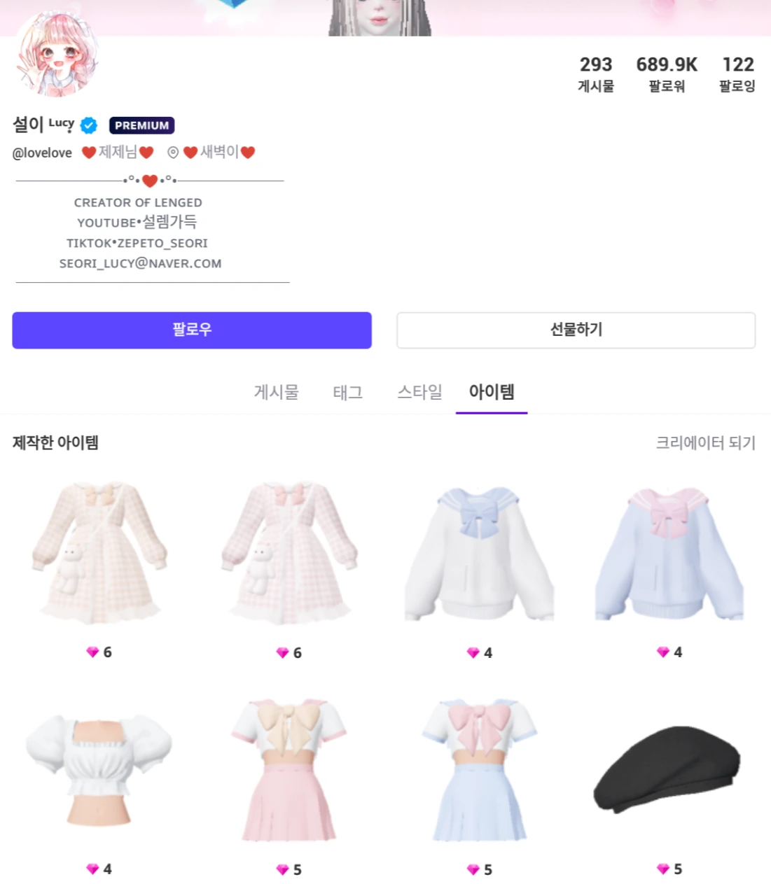 그만큼 제페토 세계에서는 엄청난 영향력을 가지고 있으며 팬덤도 형성이 되어있는데요. 설이라는 캐릭터를 소재로 팬들이 다시 제페토 내에 아이템을 만들어 판매하고 있기도 합니다.
