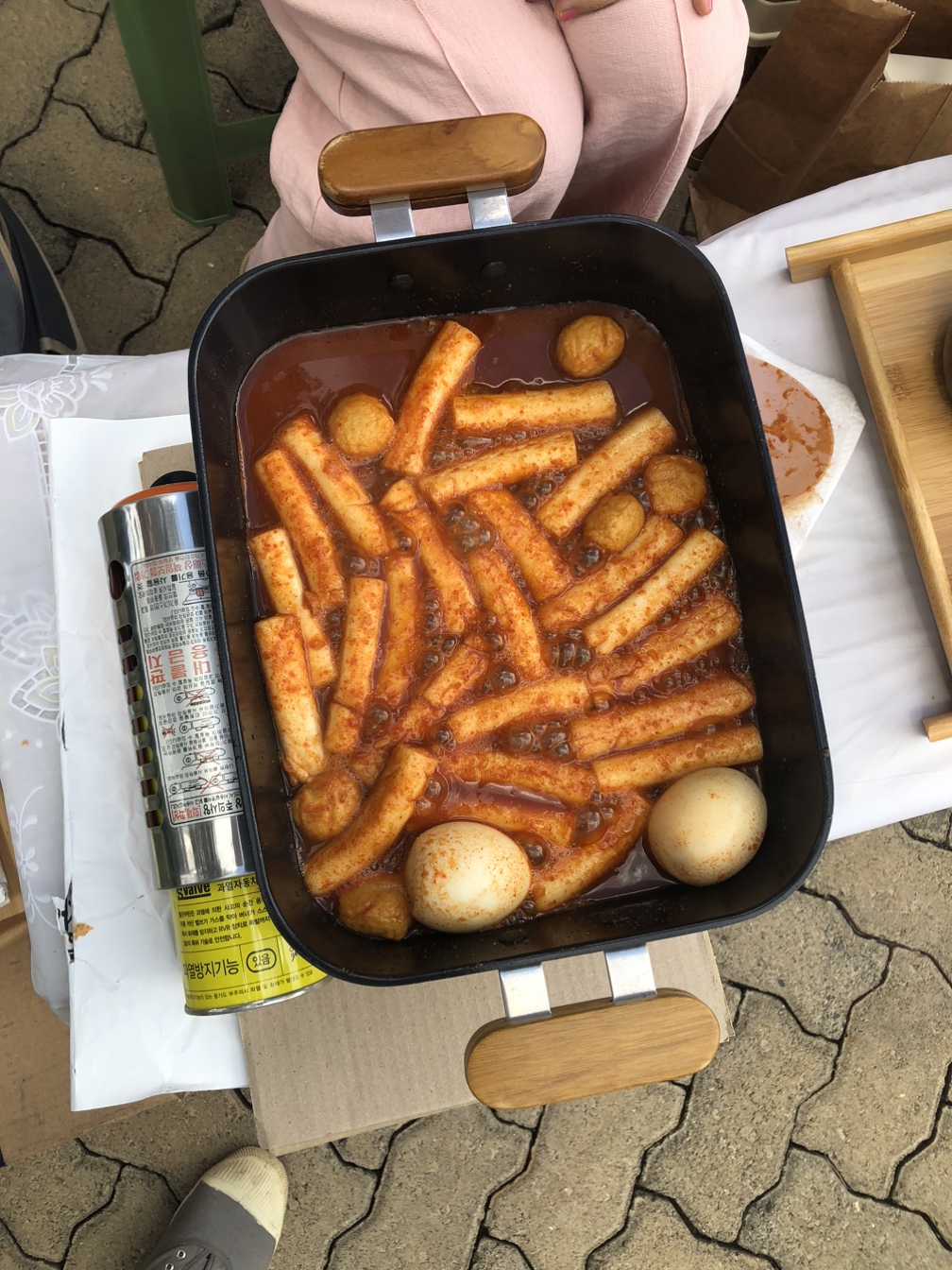 만두는 기름을 두르고 에어프라이어에 굽고 떡볶이는 전날 만들어놓은 양념장과 떡, 어묵, 달걀을 준비해서 아이스박스에 넣었다.