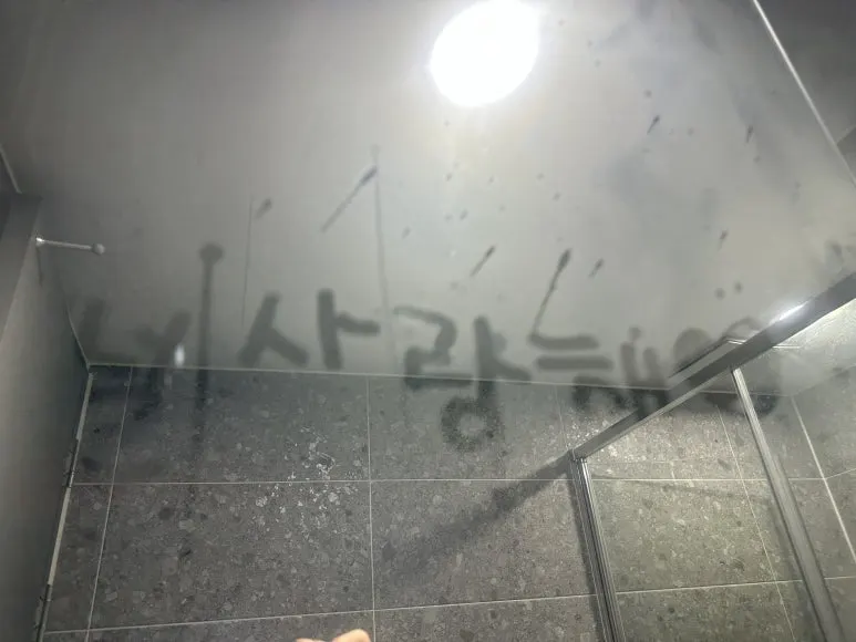 습기 찬 거울의 쓴 '널 사랑해♥'라는 글..