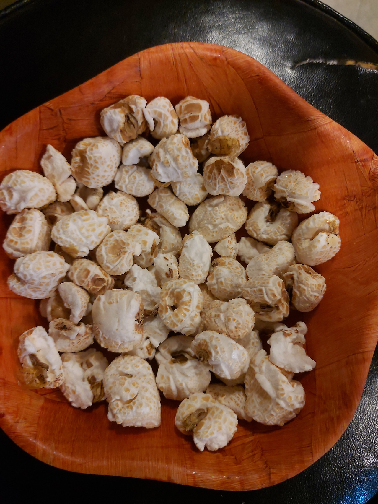 -뚜껑이 열리면서 뻥 튀겨진 곡물은 그 크기가 헐크처럼 몸집이 수 배로 부풀어 오르고 씹으면 바삭바삭 소리가 나면서 먹기 좋은 간식이 된다.
