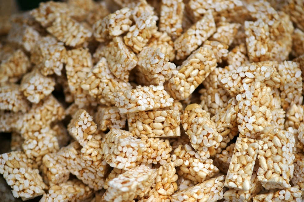 심심풀이 주전부리 쌀 튀밥에 조청을 묻혀 만든 쌀강정. ⓒ코리아넷 / 해외문화홍보원 • wikipedia commons, public domain