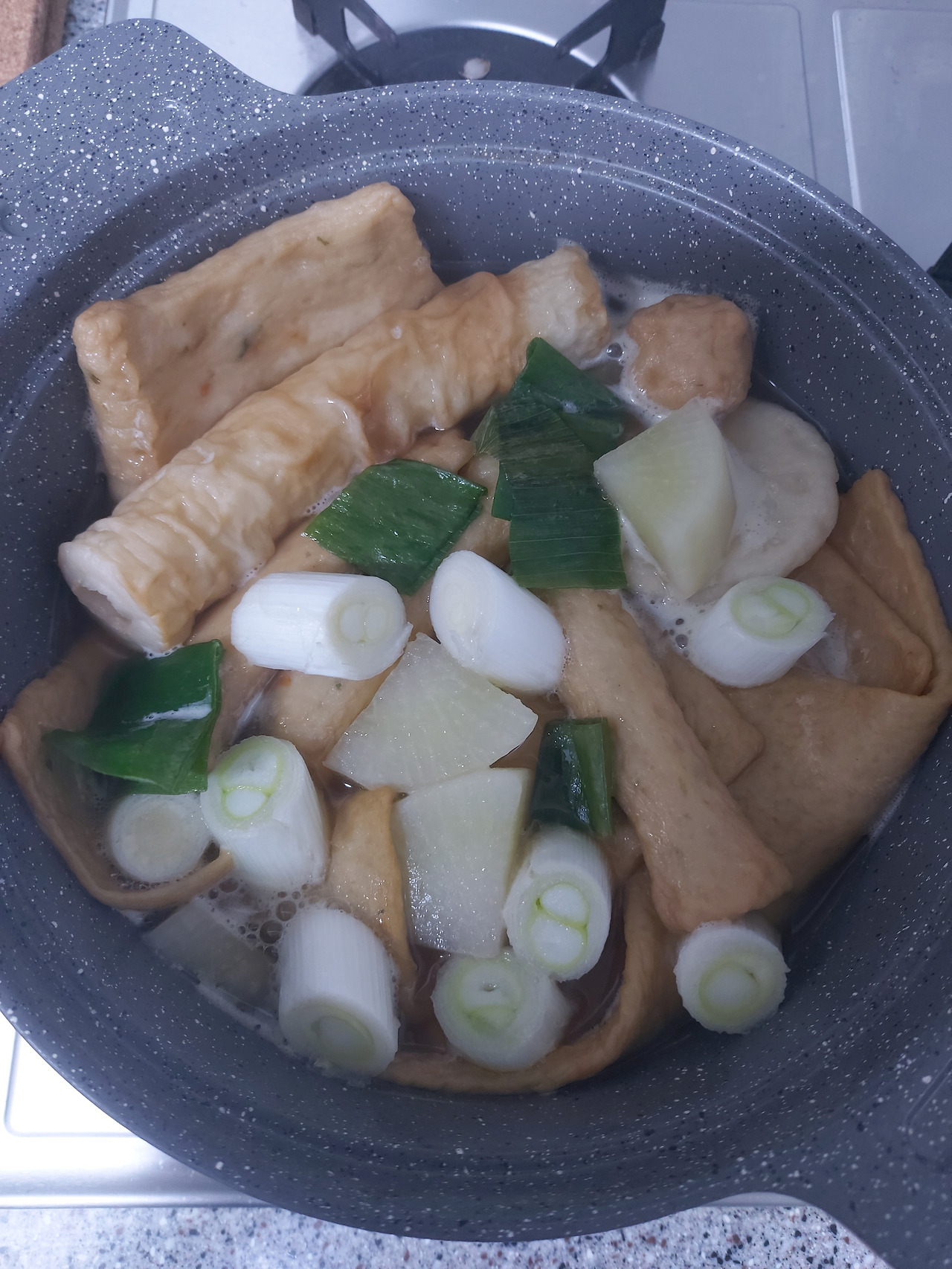마트에서 파는 어묵과 무, 대파를 썰어 넣고 끓인 어묵탕. ⓒPARK IN KWON