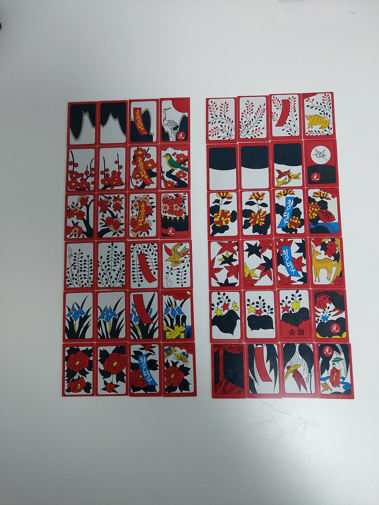 할머니와 지내는 시간이 많아지면서 우리 형제들은 화투 놀이를 궁금해했고 자연스레 화투 치는 법을 알게 됐다. 화투(花鬪)의 한자어를 직역하면 꽃싸움인데 일 년 열두 달을 상징하는 꽃이나 나무, 새, 동물, 풍경 그림이 4장씩 짝을 이룬 플라스틱 재질의 직사각형 딱지 48장이 한 세트다.