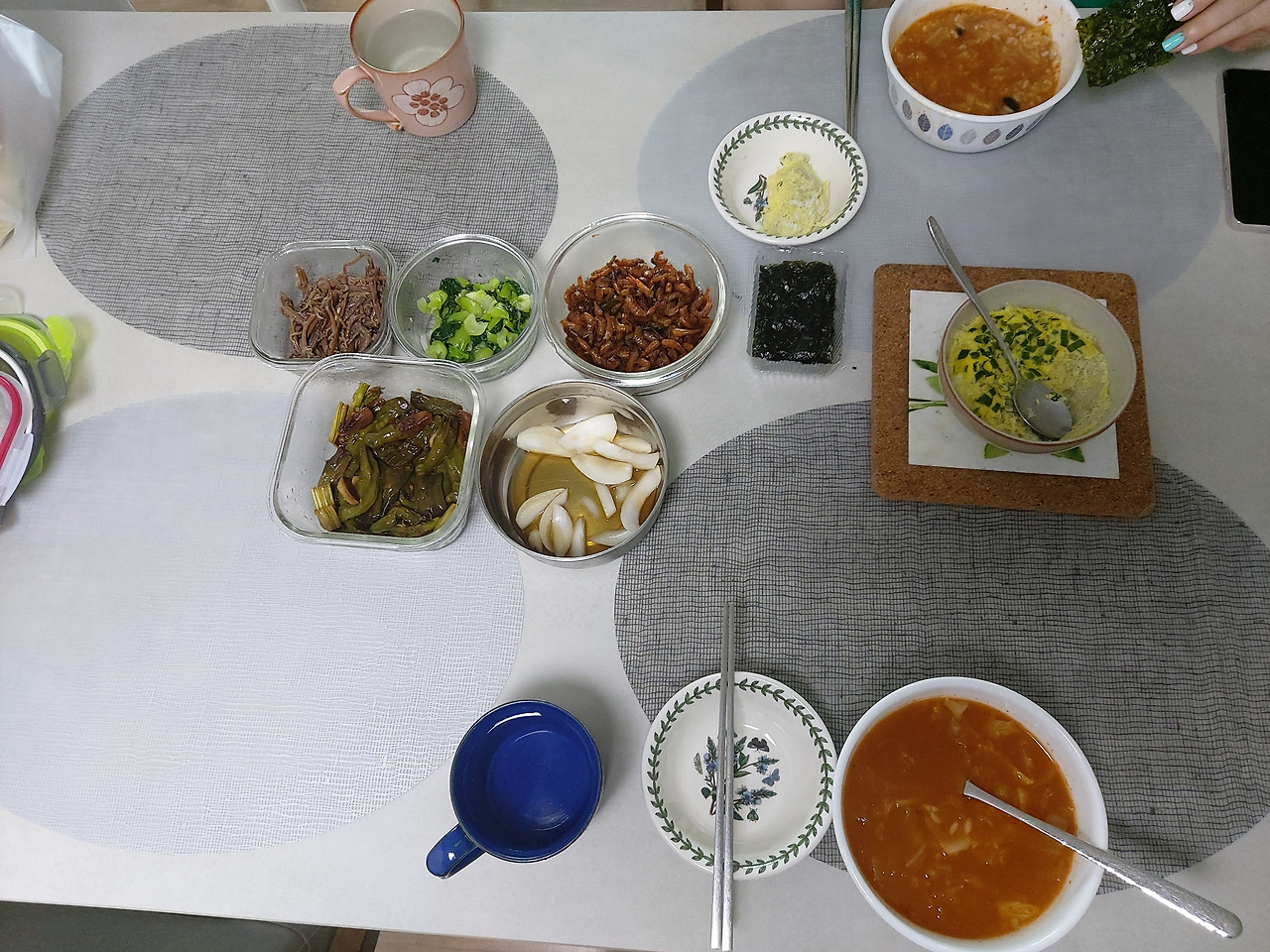 김치 국밥과 달걀찜, 조미김 등으로 차린 초간단(初簡單) 주말 아침 밥상