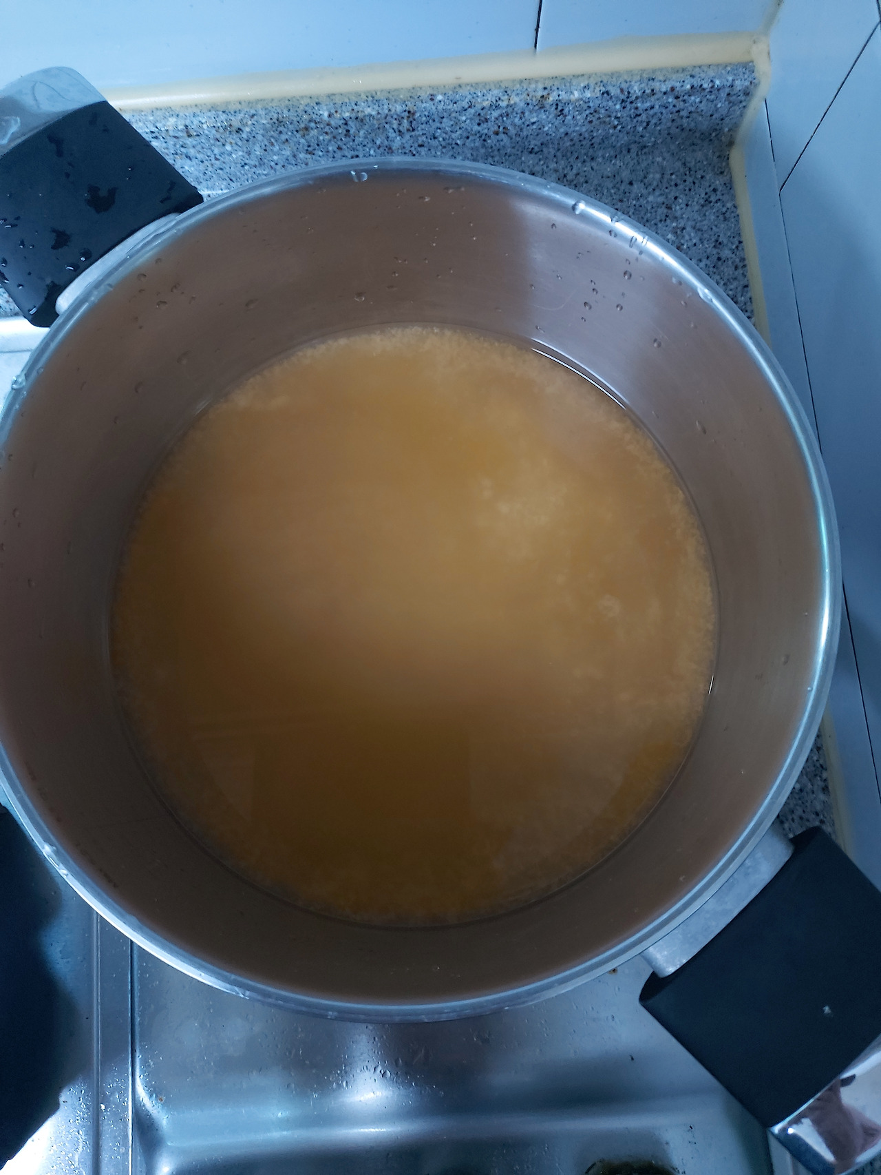 냄비에 물을 붓고 된장 한 큰술과 소주 한 잔을 섞어준다.