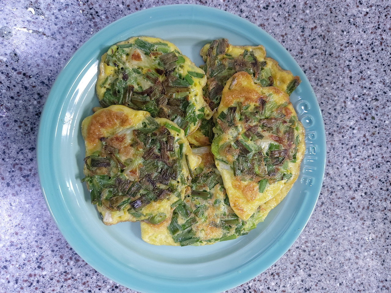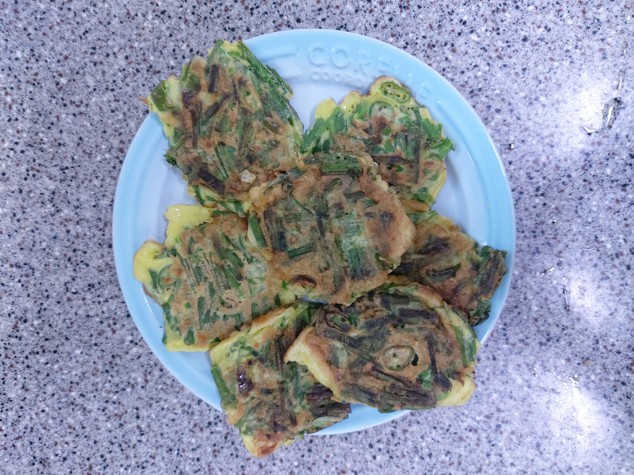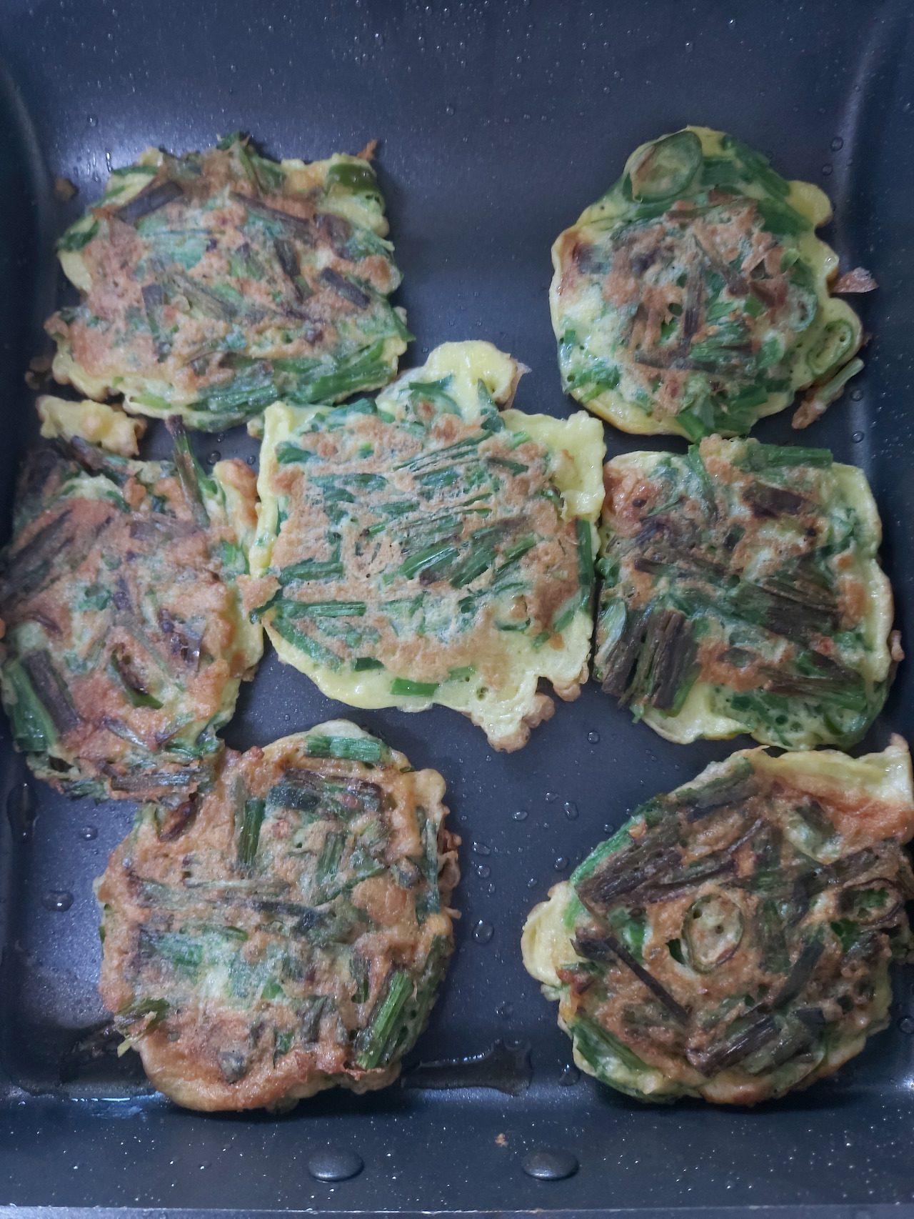 백업 음식이 하나보다는 둘, 둘보다는 셋이 낫다는 것은 선택권의 확장이라는 점에서 불문가지(不問可知)다. 양파전을 대체할 또 다른 백업 음식이 필요했다. 이번에는 양파전 때처럼 고민하지 않고 손쉽게 해답을 찾아냈다. 익숙한 식재료이자 부침개로 인기가 많은 부추와 쪽파가 생각났고 양파전 이전에 가끔 밥상에 올렸던 게맛살 전이 기억났기 때문이다.