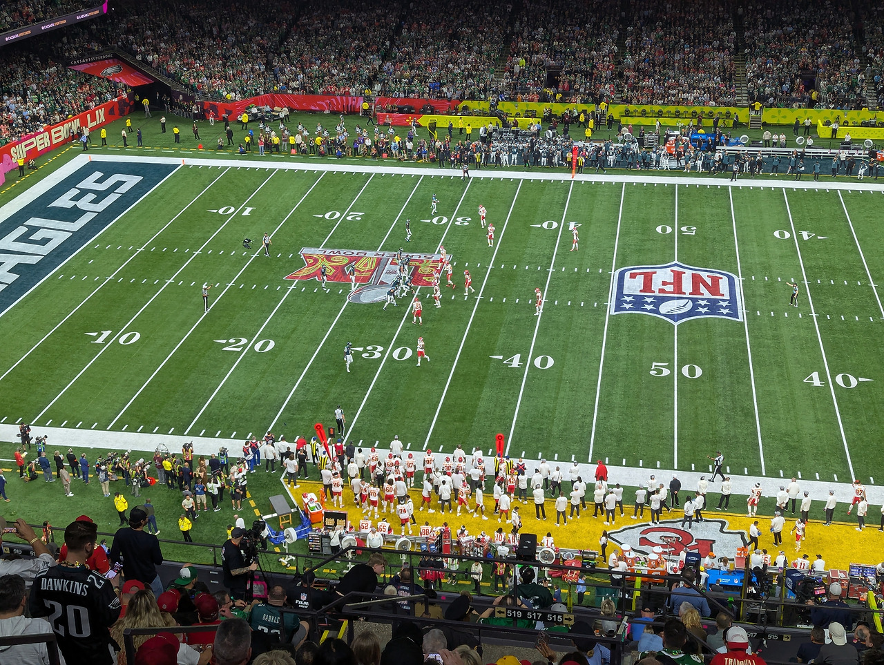 제59회 슈퍼볼 경기 장면. 2025년 2월 9일(한국시간 10일) 뉴올리언스 시저스 슈퍼돔에서 열린 경기에서 필라델피아 필리스가 캔자스시티 치프스를 40-22로 꺾고 2018년 이후 7년 만에 통산 두 번째 우승을 차지했다. ⓒelisfkc2 • Super Bowl LIX • wikipedia commons, public domain
