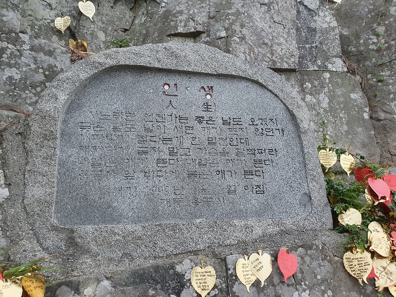 우리가 처음 도착한 곳은 한 가지 소원을 이루어 준다는 해동 용궁사 였다. 인생이라는 주제로 돌에 노래가사를 새겨 놓은