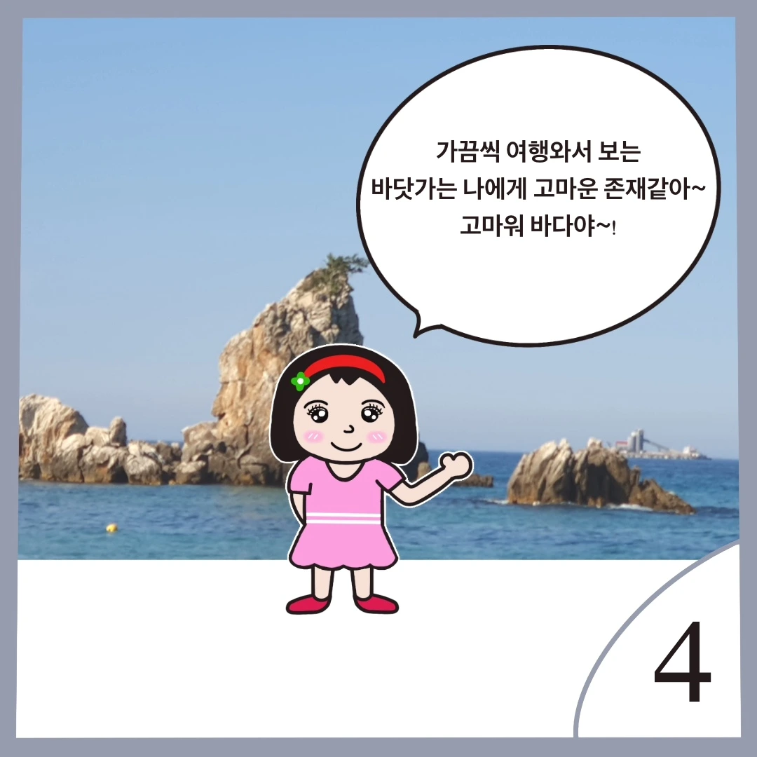 가끔씩 여행 와서 보는 바다를 본 프미는 고마움을 느낀다.