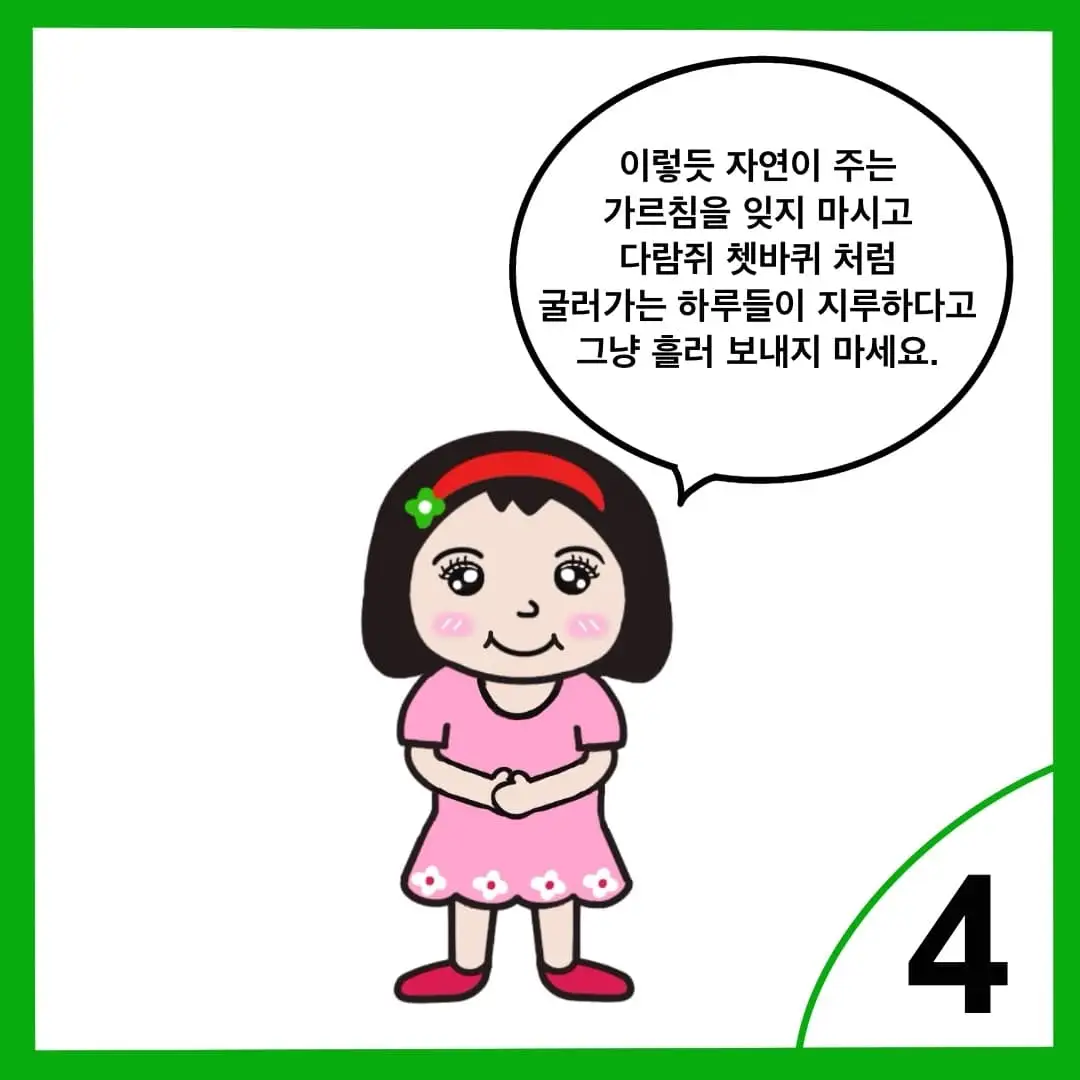 이렇듯 자연이 주는 가르침을 잊지 마시고 다람쥐 쳇바퀴 처럼 굴러가는 하루들이 지루하다고 그냥 흘러 보내지 마세요~
