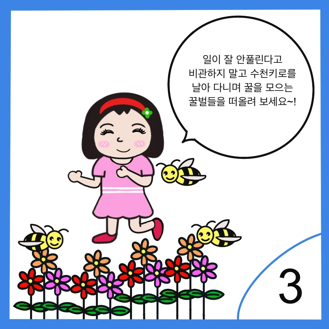 일이 잘 안 풀린다고 비관하지 말고 수천키로를 날아 다니며 꿀을 모으는 꿀벌들을 떠올려 보세요~!
