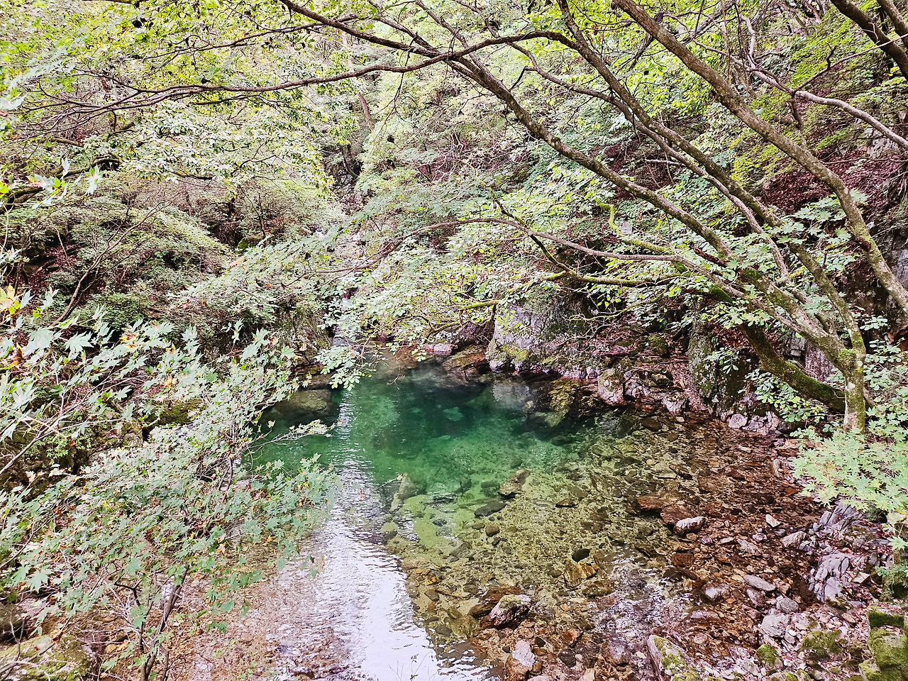 산속에서 계곡물이 여러 번의 단계를 거쳐서