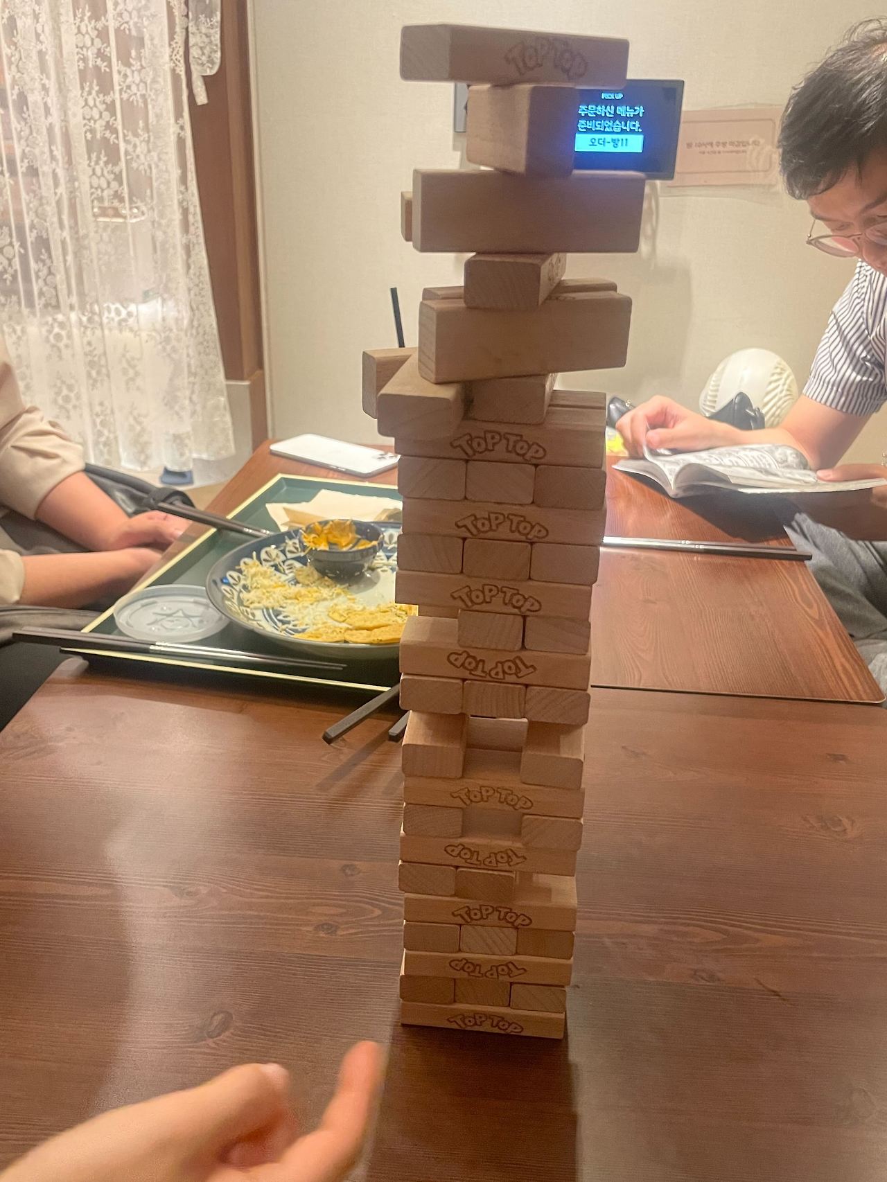 저녁 먹으러 가야 하는데, 간식은 결코 빼놓을 수 없다며 무엇을 시킬지 한참을 실랑이를 벌이던 그들... 젠가 게임이 이렇게 재밌는 게임인 줄 미처 몰랐다는 팀원들이 참 감사할 따름이다.