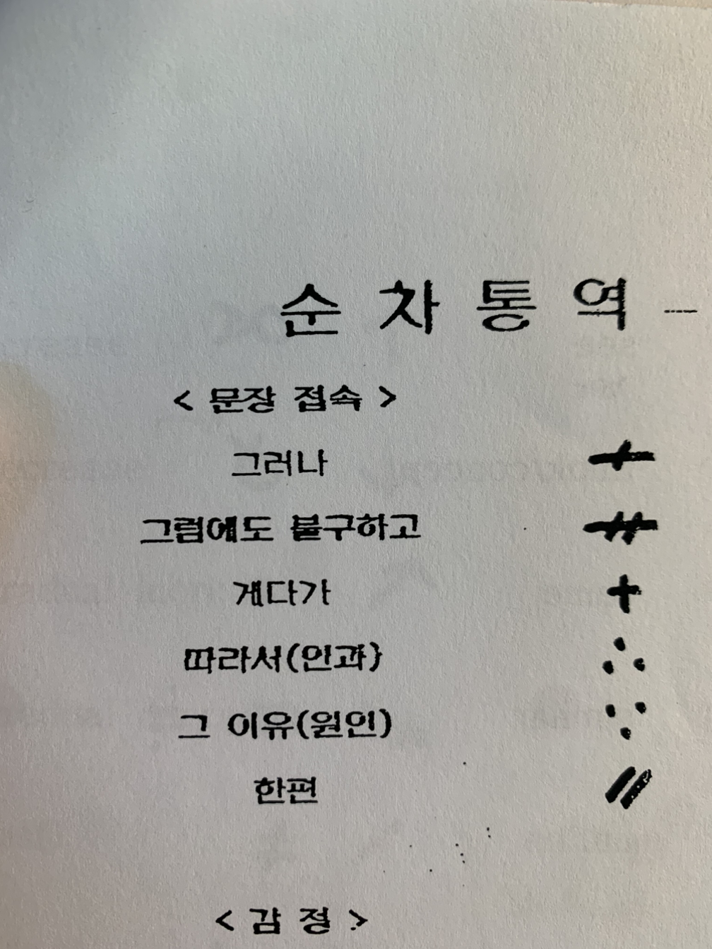 의미의 전환이 일어나는 접속사(but, therefore, becasue, despite는 반드시 표시한다. 대체적인 내용을 살렸다 해도 전환을 놓쳐서 살리지 못하면 맹숭맹숭한 통역이 나온다. 접속사 심벌은 필수로 만들어서 활용한다.