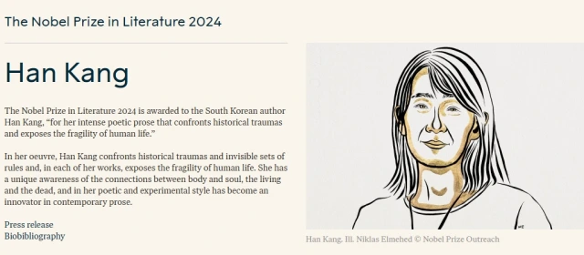 노벨상위원회가 일목요연하게 정리한 한강 작가의 출판 이력
