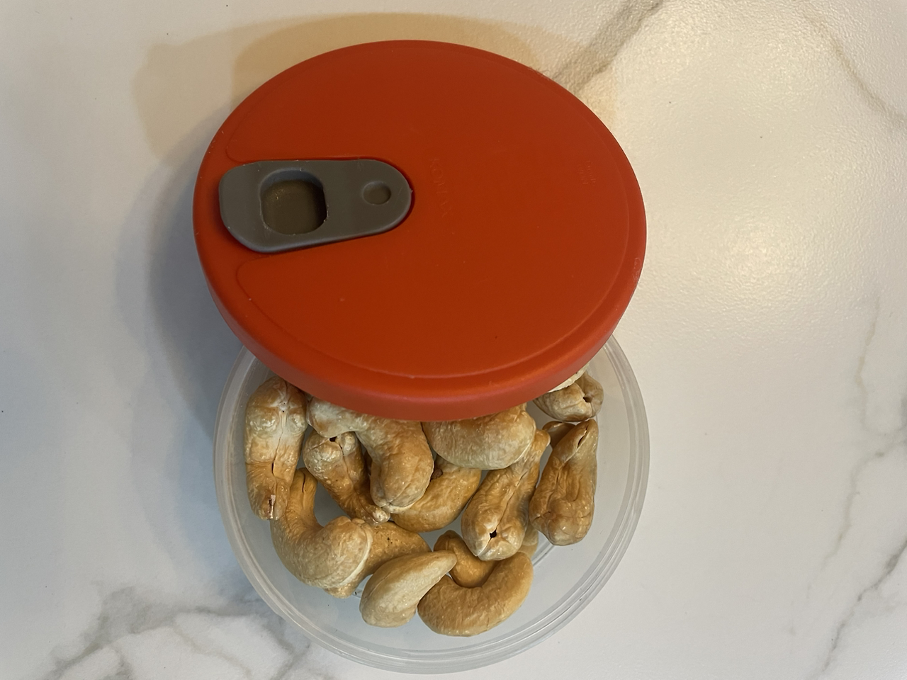 출장 중에는 일 하다가 식사 때를 놓치는 경우도 종종 있다. 짧은 휴식시간에 냄새나지 않게 먹기 좋은 견과류, 아몬드같이 같이 딱딱한 견과류는 씹는 소리가 날 수 있어서 부드러운 캐슈넛을 챙긴다. 참치 샀을 때 받은 케이스에 넣고 다니는데 아주 요긴하게 잘 쓰고 있다.