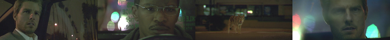 너무나 깔끔한 택시를 보고 이미 맥스가 보통 택시기사가 아님을 알아본 빈센트. 어두운 밤길 도로로 달려든 동물들을 치지 않으려고 차를 세운 맥스. 사람이라면 당연히 있어야 할 것이 빠져있는, 그저 돈을 받고 파리 죽이듯 사람을 죽이는 프로 킬러는 혼란스러워진다. 그의 영혼은 잠시나마 흔들린다. 이 장면에서 표정만으로 심적 동요를 표현하는 톰 크루즈의 연기가 압권이다.