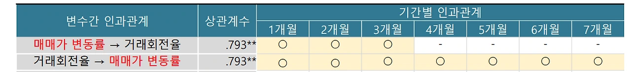 그리고 지난달 분석했던 과거 5년간의 거래량과 매매가 변동률 간의 인과 관계에 있어서도 매매가와 거래량은 서로의 인과관계가 되면서 기폭제 역할을 하기도 했다. 즉 침체기 급매물 등 저가 매물이 소진된 후 약간의 가격 상승이 있게 되고 금리와 수요 여건 등이 살아나게 되는 등 거래여건이 회복되면서 아파트 거래량이 늘어나기 시작하면 매매가 상승에 속도가 붙었었다는 것이다.