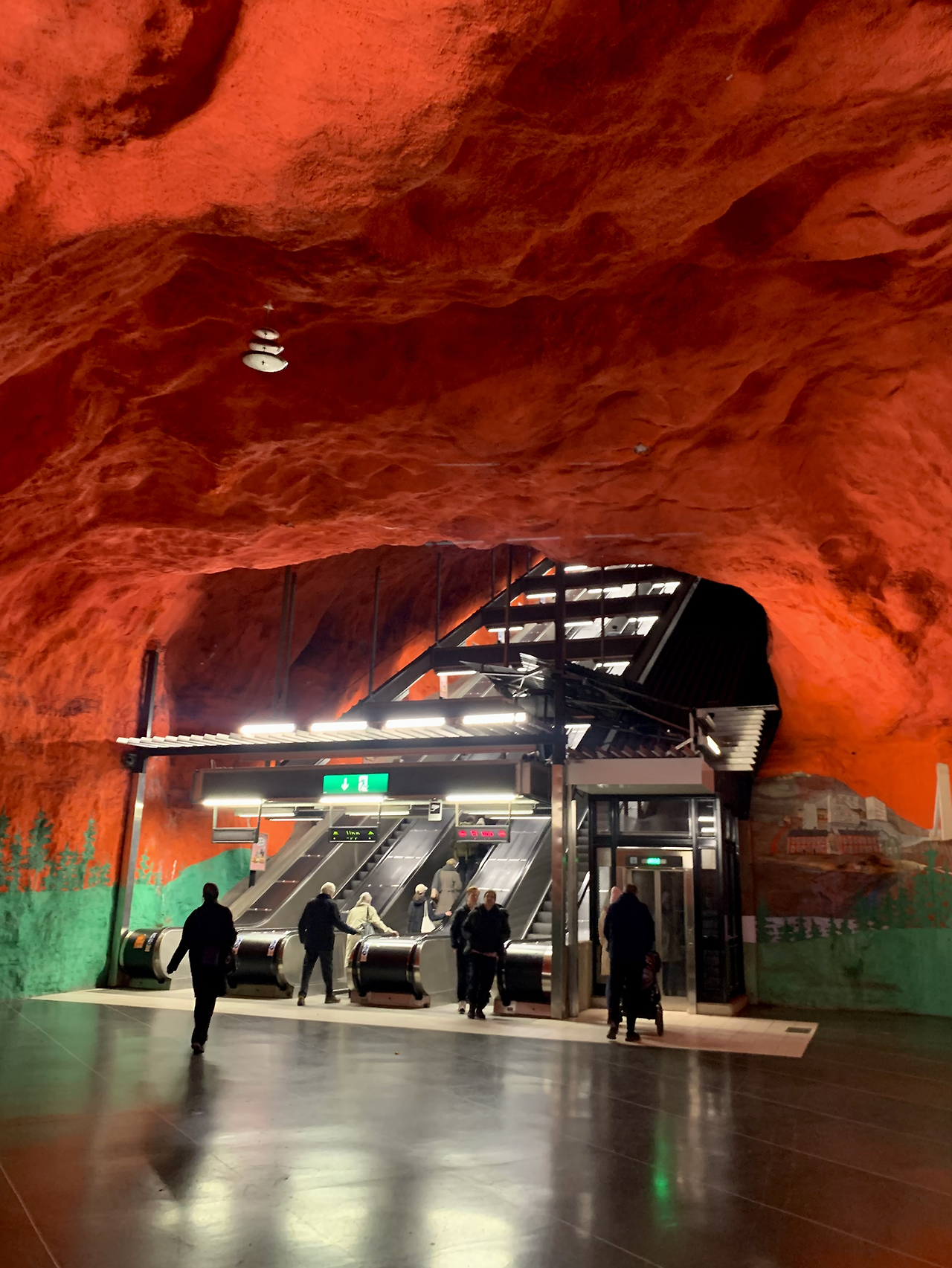 스톡홀름의 지하철은 '세계에서 가장 긴 예술 갤러리'라는 별명을 가지고 있다. 플랫폼마다 색과 조형물이 달라 동굴 속을 탐험하는 듯한 느낌을 준다.