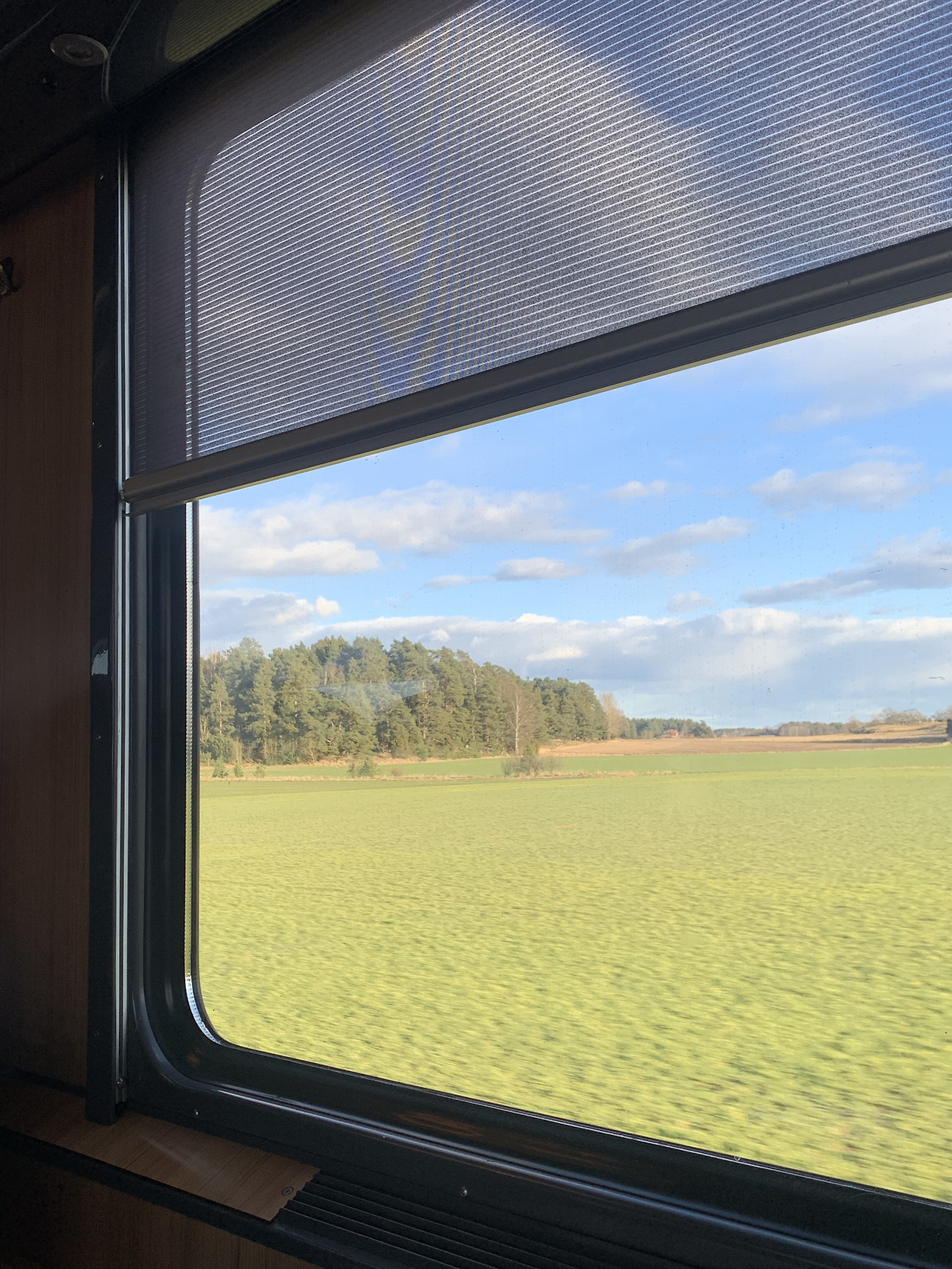 스톡홀름을 떠나 달리는 기차 안, 창밖으로 펼쳐지는 풍경이 한 폭의 수채화처럼 다가온다. 고요한 호수와 숲, 설경이 이어지며 긴 여정도 어느새 휴식처럼 느껴진다.