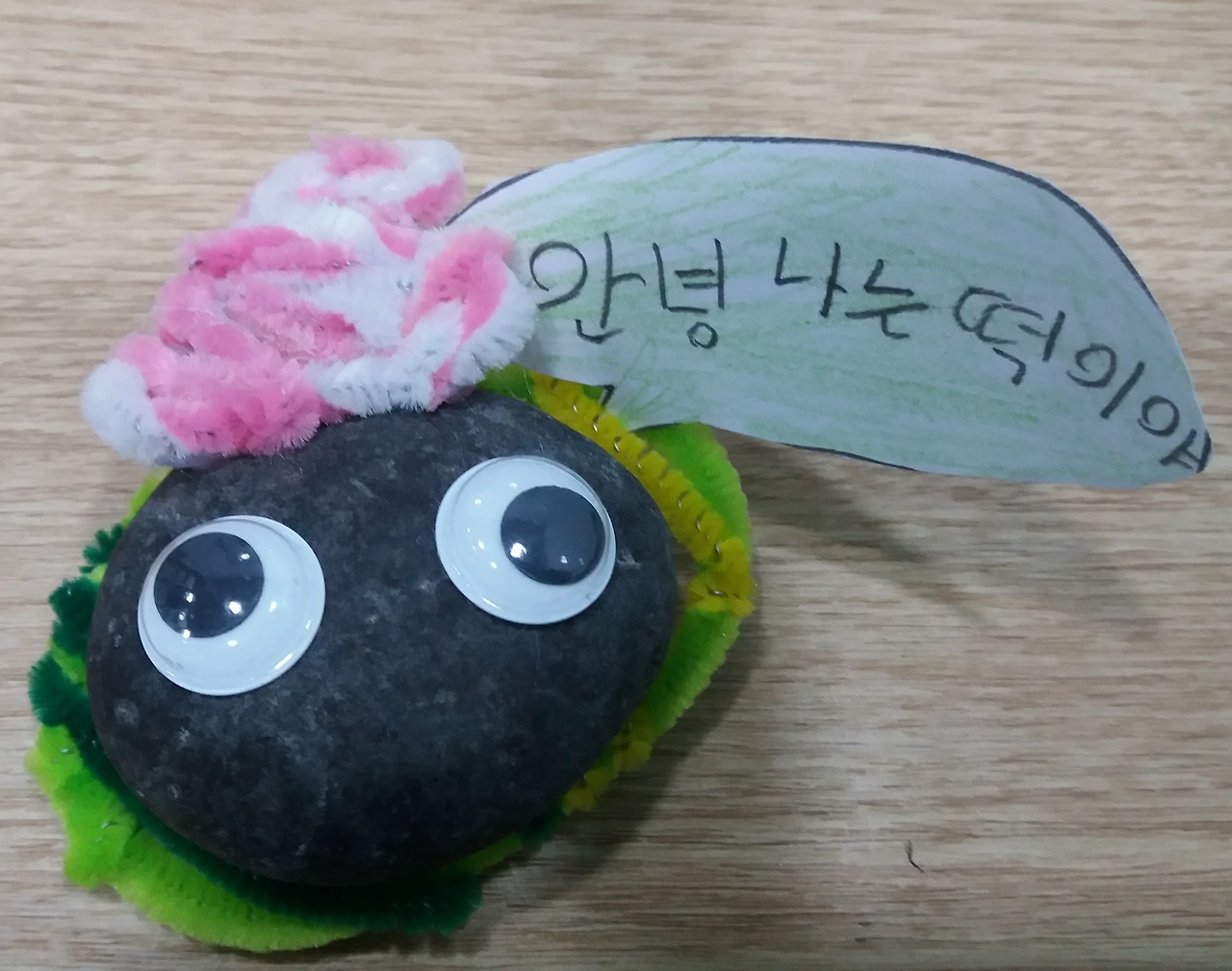 아이들과 읽게 된 재미있는 책 속의 주인공도 애완동물을 간절히 키우고 싶어한다. 그러던 어느날 부모님이 선물해주신 애완돌! 아이는 처음에는 아무 반응이 없는 돌에 대해 실망하지만 이내 마음을 쏟는다. 돌과 산책을 하고 이름을 지어주고, 정성을 다한다. 우리 아이들도 작은 애완돌을 하나씩 받았다. 이름을 지어주고 작은 소리로 속삭이며 이야기를 나눈다. 깨끗이 씻어 로션도 발라주고 아끼고 사랑해 준다.
