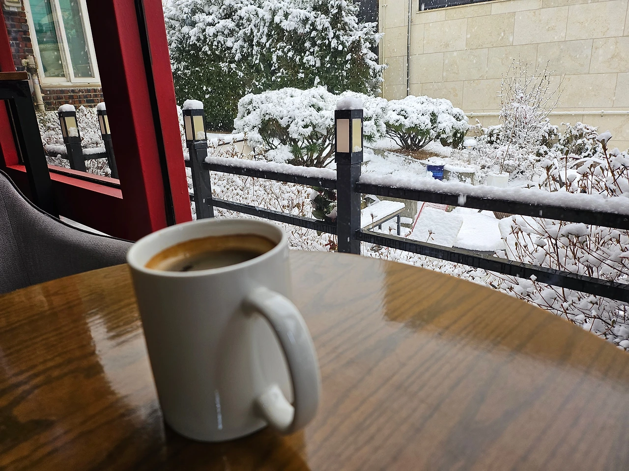 또, 손님이 방문해 주셨어요. 역시나 창밖으로 내리는 눈은 덤으로 기분 좋게 해 주나 봅니다. "커피맛이 너무 좋네.." 하시네요. 외국 어딘가를 잠깐 생각해 내시기도 하구요.