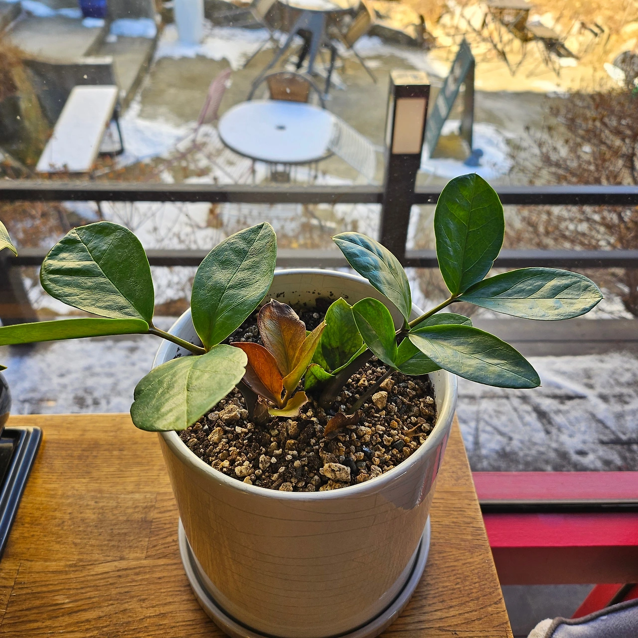 그런데 며칠 지나니 금전수 색깔이 갈색으로 변해 있다. 둘째 친구들이 개업선물로 준 거라 물은 내가 주어도 녀석이 아끼는 화분이다. 날이 갈수록 줄기는 힘이 없어지고 마침내는 푹 고꾸라진다. 그 와중에도 줄기 끝에 있는 잎들은 초록으로 생생하게 매달려 있다... 아이러니했다. 죽어 가는 줄기의 양분으로 그렇게 끝까지 살아 있는 모습이라니...