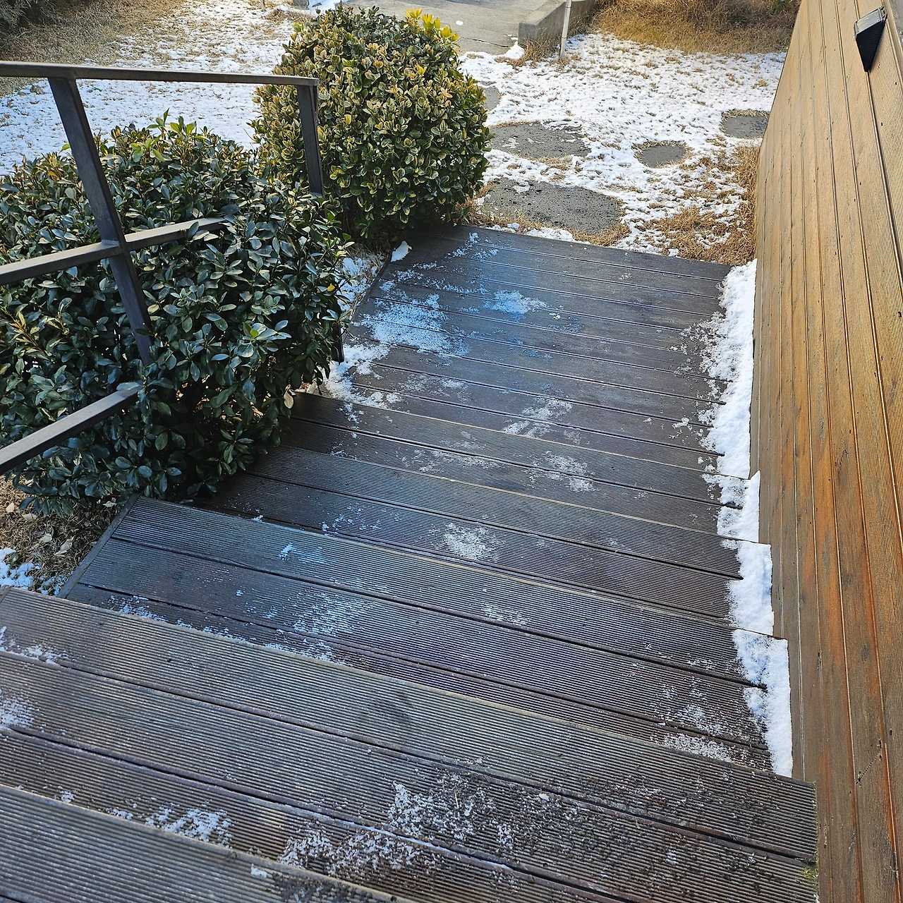 어제 내린 눈이 아침이 되니 얼어붙어 버린 곳이 많다. 염화칼슘을 카페 계단 그득 뿌려두었는데 하얀 알갱이가 되어 흩뿌려져 있다. 진주목걸이가 끊어져 쏟아져내린 것 같다. 덕분에 계단과 입구의 눈은 다 녹았다. 작은 빗자루로 살살 쓸어내어 길가 얼어붙은 곳에 뿌려주었다.