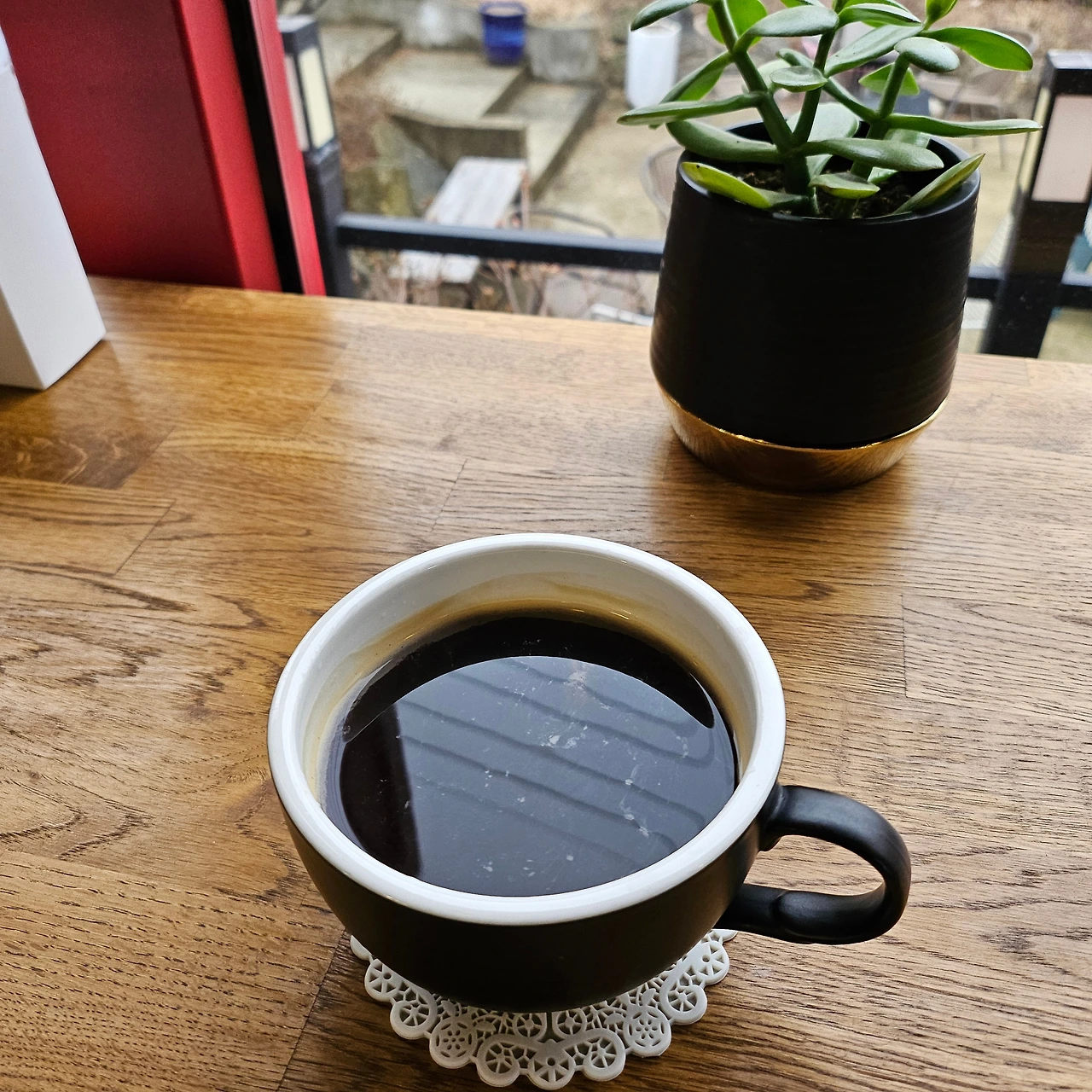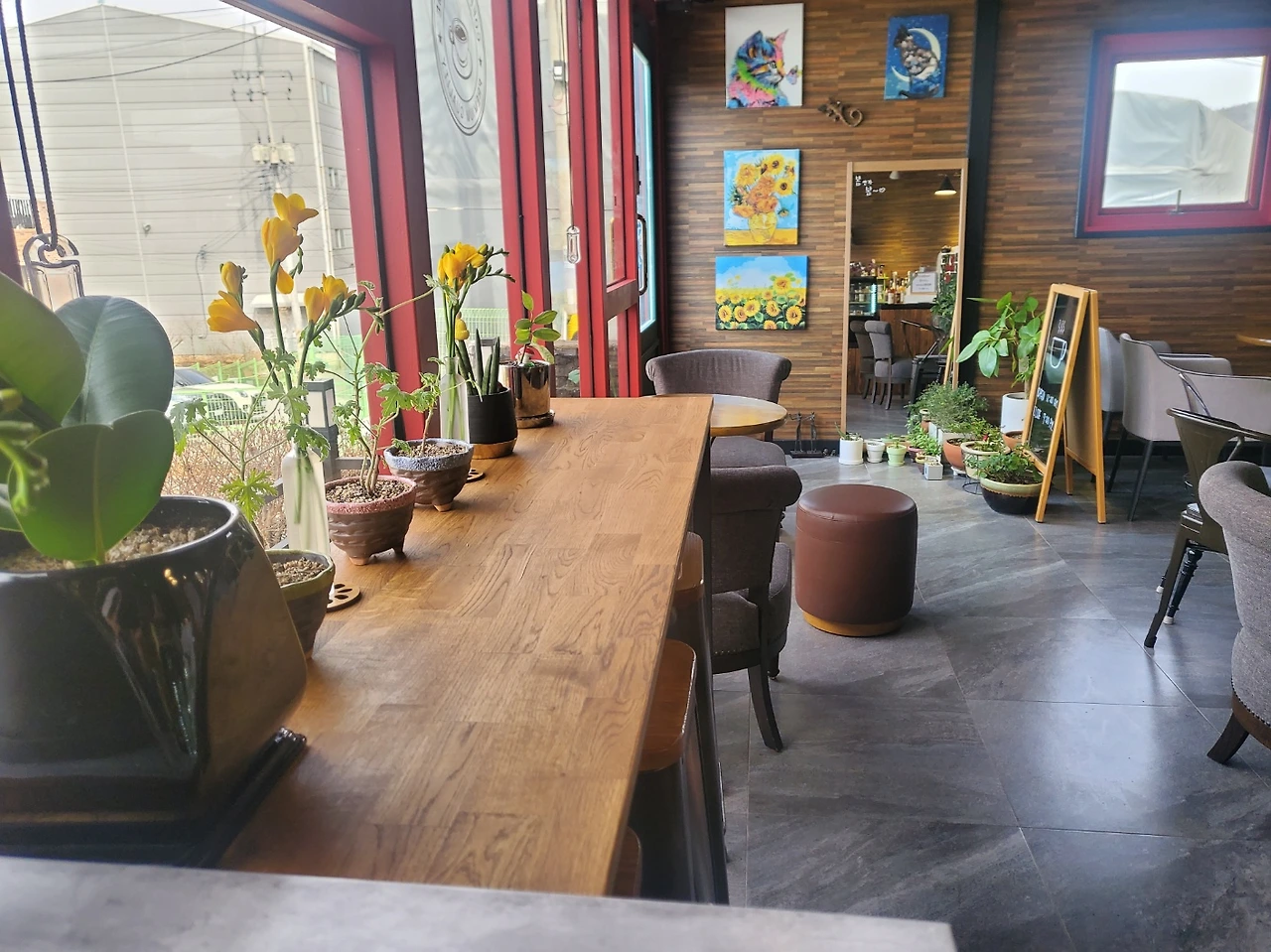 카페의 일년은 구정 전과 후로 나뉘는 것 같다. 구정이 지나면서 외투가 가벼워지고 쌀쌀해 웅크릴지언정 마당 테이블에 앉고 싶다. 의자를 포근하게 감싸던 방석은 걷혀 다시 올 겨울을 기약한다. 카페 전면에서 반짝이던 눈모양 전등도 퇴출되었다. 카페 안은 이제 새봄콘셉트로 거듭날 것이다.