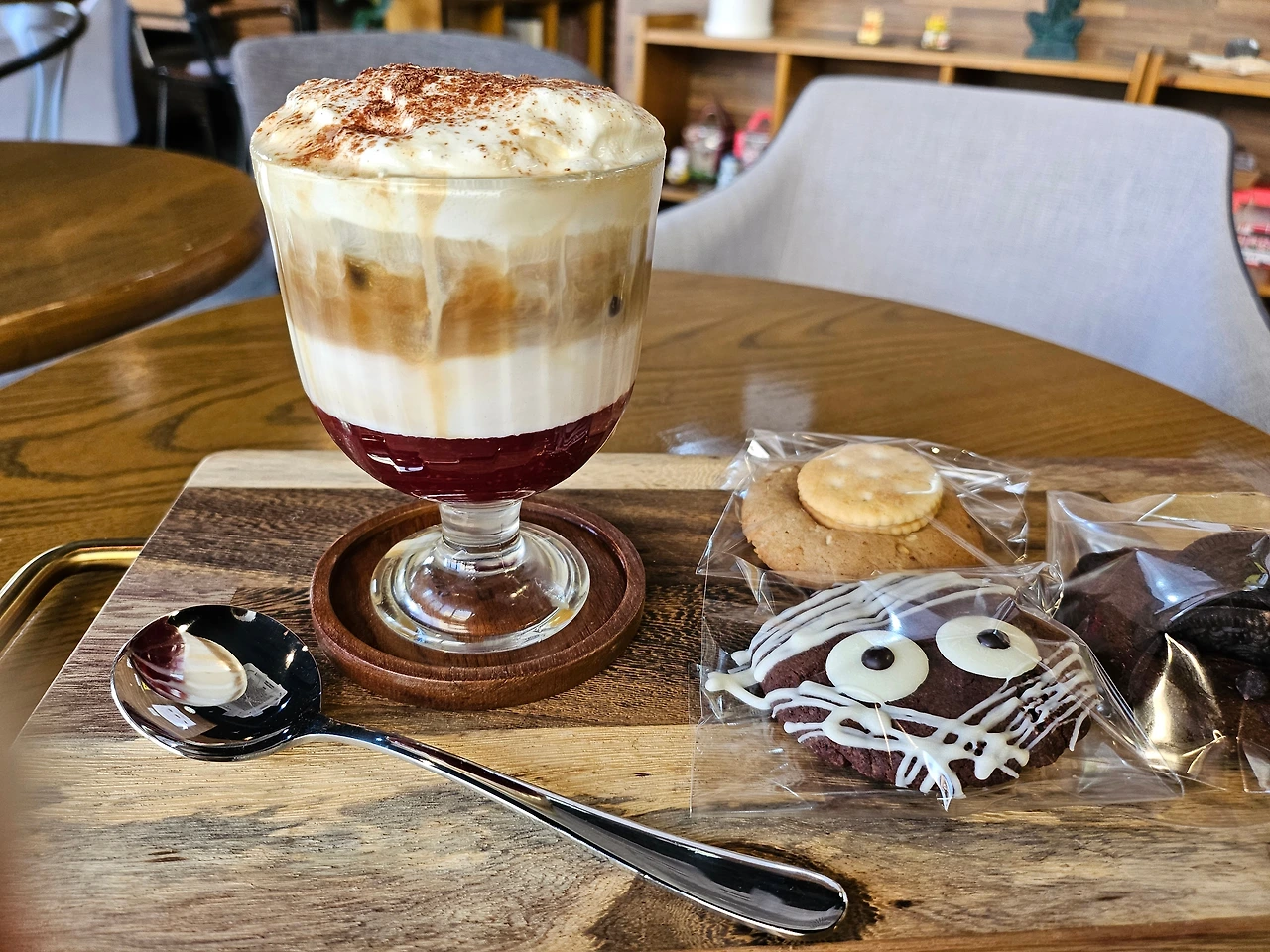 쌍화라테, 생강라떼: 건강한 라떼음료 되시겠다. 첫 모금부터 칭찬세례를 받는 건강과 맛을 다 잡았다. 추운 겨울에 쌍화차와 더불어 비수기를 이겨내게 해 주는 효자음료이다. 장년층에서 많이 찾을 것 같지만 젊은 고객들도 주문을 해 주신다.