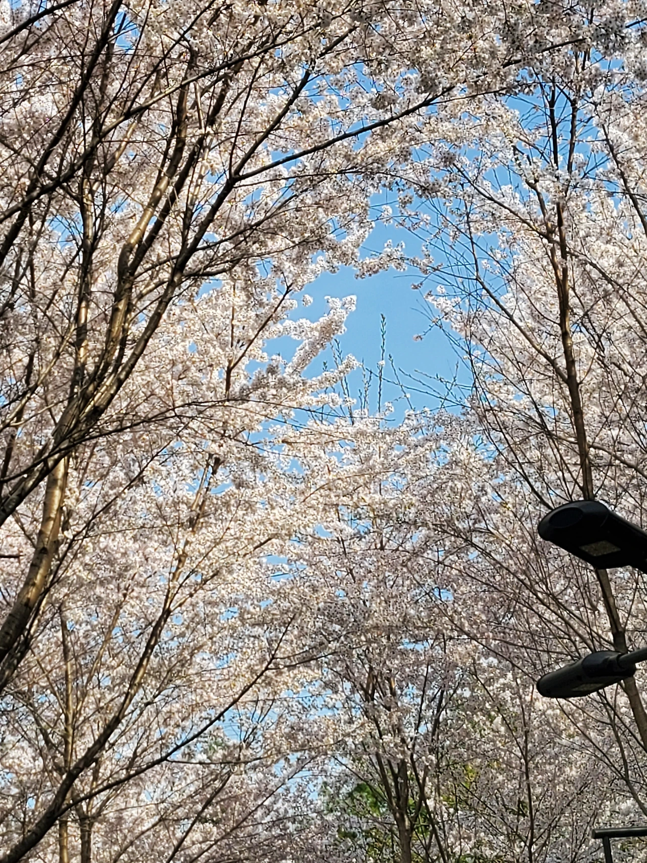 집에서 입구까지 300미터...구름다리 지나면 본격적인 산책로가 시작된다. 그 시작점에는 벤치가 있다. 오른쪽 경의선 철로를 끼고 탄현동에서 시작하면 일산동을 거쳐 죽 이어지는 둘레길이다. 봄이 되면 벚꽃으로 흐드러진다.