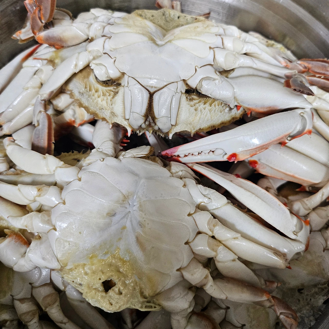 꽃게가 특히 맛있다. 사실 영덕게, 홍게, 킹클렙 할 것 없이 없어서 못 먹는다. 포항 사는 큰언니는 홍게철이 되면 아이스박스 가득 찐 게를 싣고 올라왔다. 다섯 형제는 함께 모여 쪼개고 자르고 발라 게걸스럽게 먹어 댔다. 게 한 가지로 한 마음이 될 수도 있다.