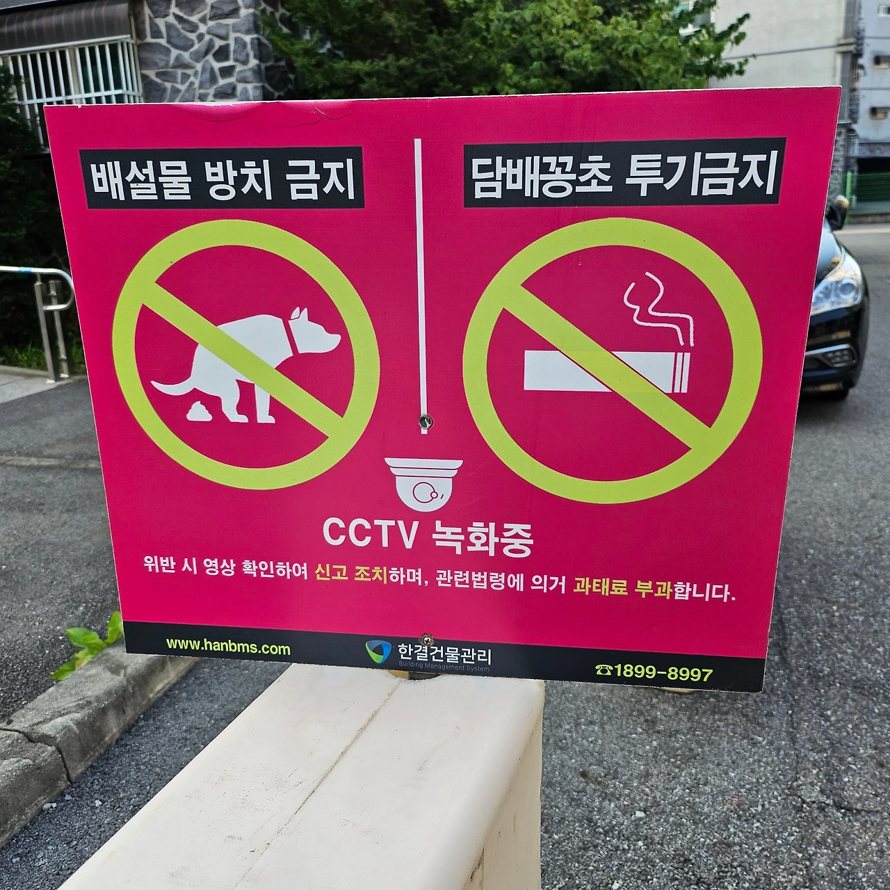 쪽 길에 근접해 있는 빌라단지 벽면마다에는 경고문이 다닥다닥 붙어 있다.